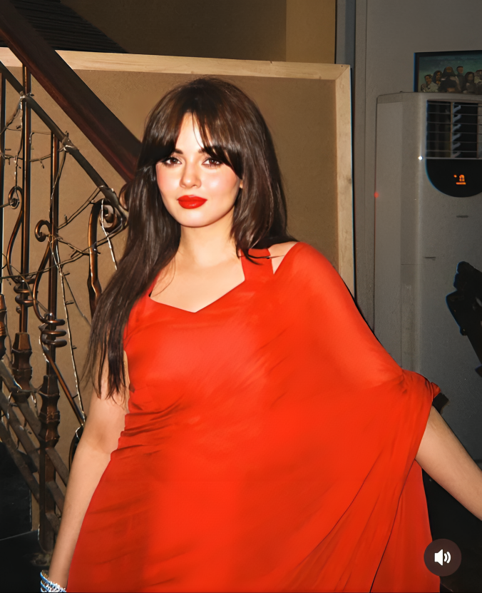 The beauty queen Komal Meer is spotted sporting a flaming red saree with a perfect fall and sophisticated finish. This saree, in contrast to others, is composed of a unique, wrinkle-resistant pure chiffon. This silky, 100% chiffon sari in a stunning simple hue is ready to make your days brighter for the holidays or any other special occasion!