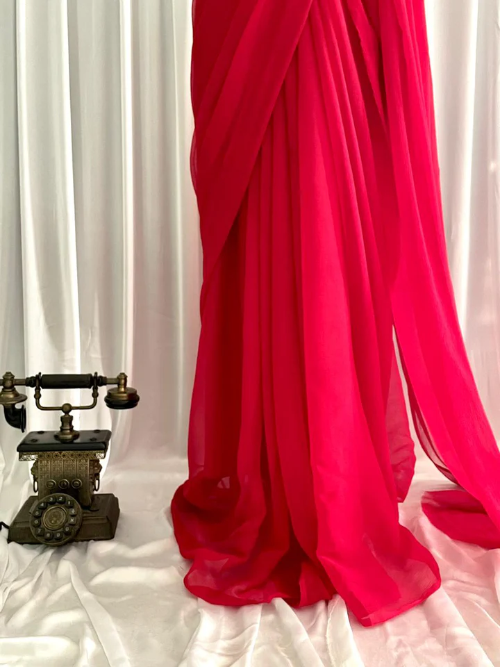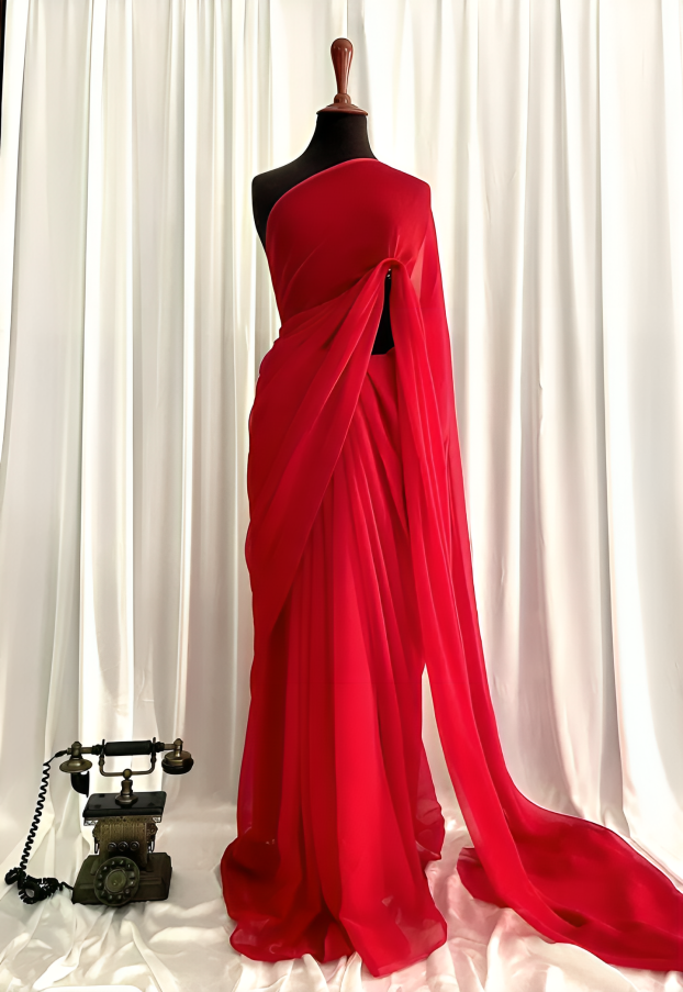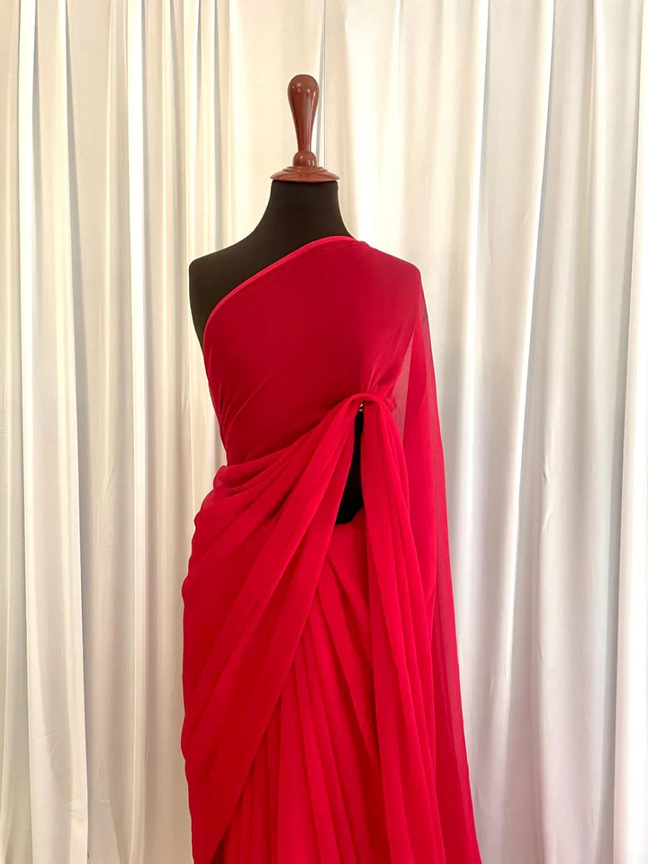 Wearing our Red Hot Saree is going to make you feel hot—the right sort! Made of exceptionally delicate chiffon, our saree falls softly to grab attention and put you at ease.